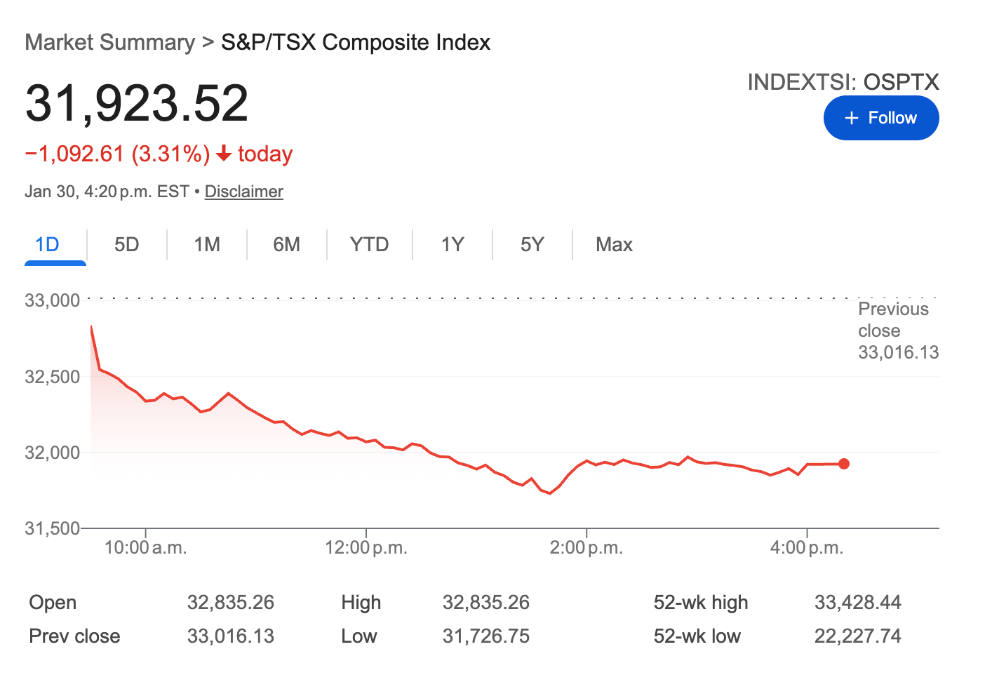 💸 1,000 Points: The Toronto Stock Exchange plunged nearly 1,000 points after a sharp sell-off in precious metals triggered by news of a more hawkish U.S. Federal Reserve nominee. Gold prices fell sharply on the day, dragging Canadian markets lower despite strong gains over the past year.