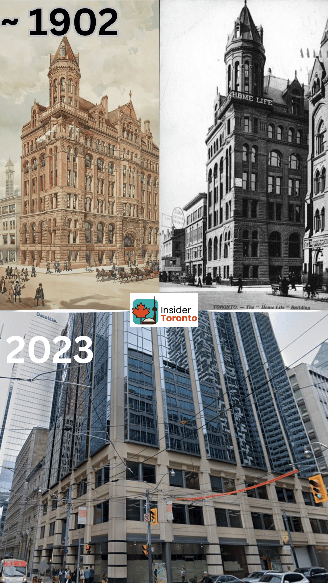 Then (1892–1901): Originally opened in 1892 as the Freehold Loan Building, this seven‑storey office structure was designed by acclaimed architect Edward James Lennox. It featured Romanesque-inspired detailing and occupied a prominent downtown location.