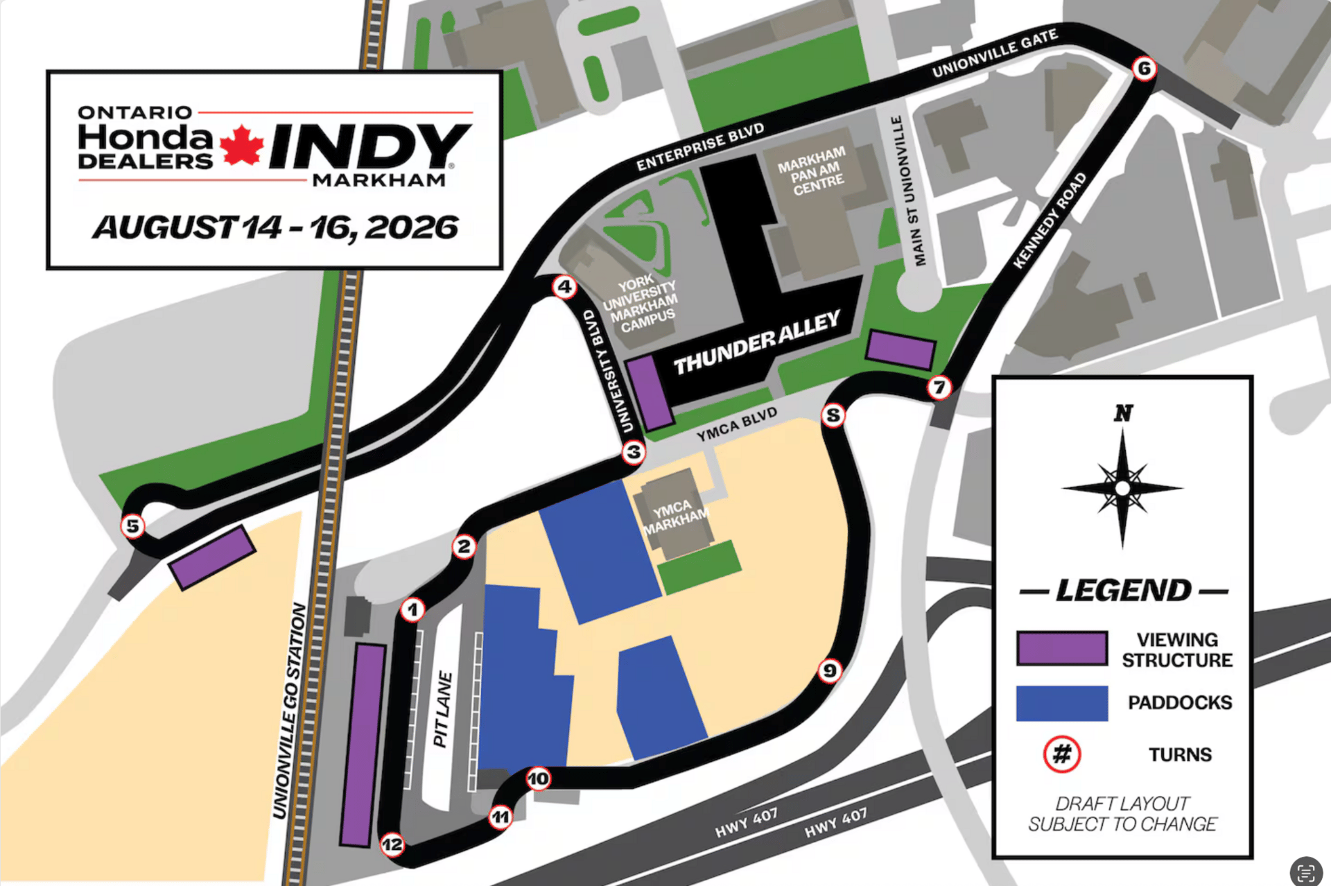 🏎️ IndyCar leaving Toronto: After nearly 40 years at Exhibition Place, Toronto’s IndyCar race is moving to Markham in 2026. The new 3.5 km track will run downtown near Kennedy Rd. and Hwy. 407, featuring rare dual pit lanes. The move comes ahead of Toronto hosting FIFA World Cup matches at BMO Field.