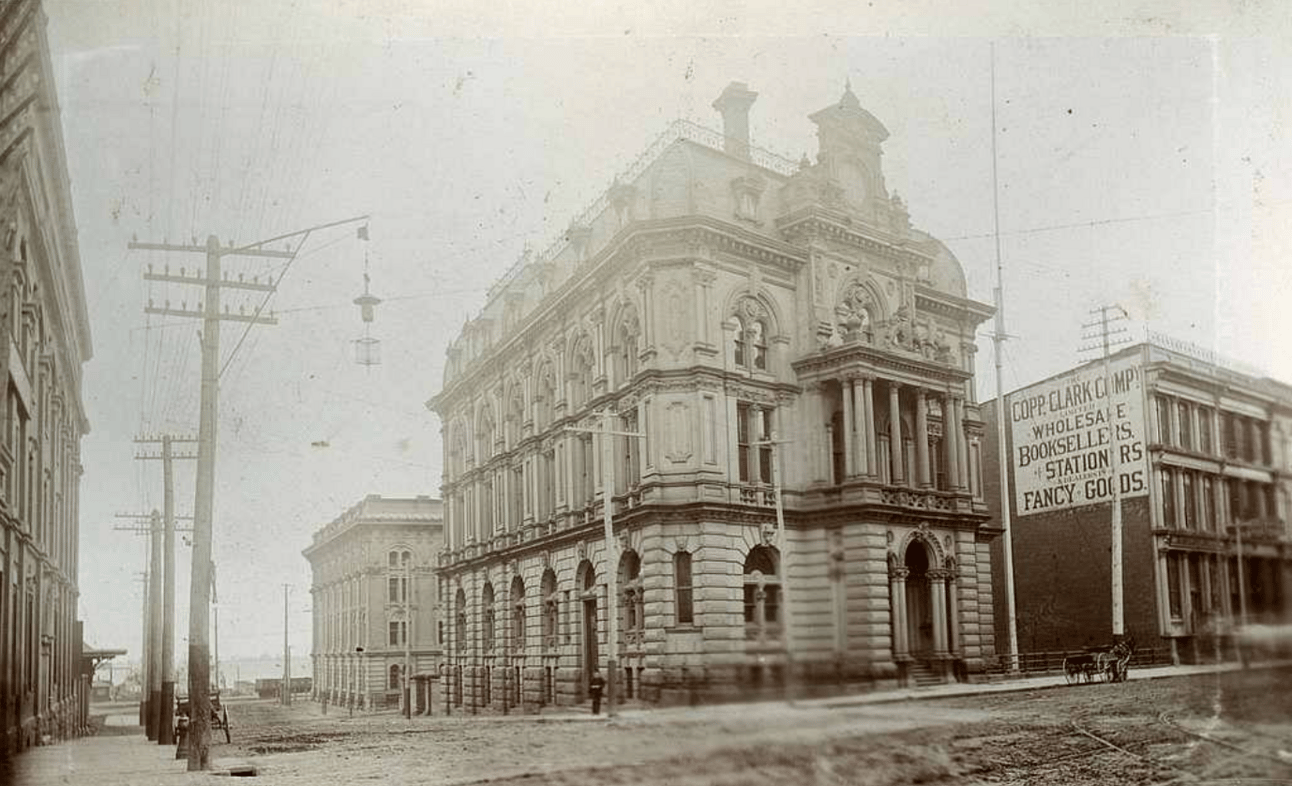 The Custom House on Front Street West (southwest corner with Yonge Street). 1890.
