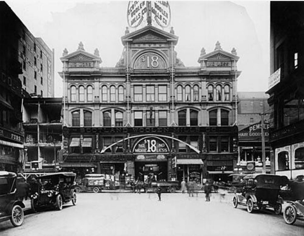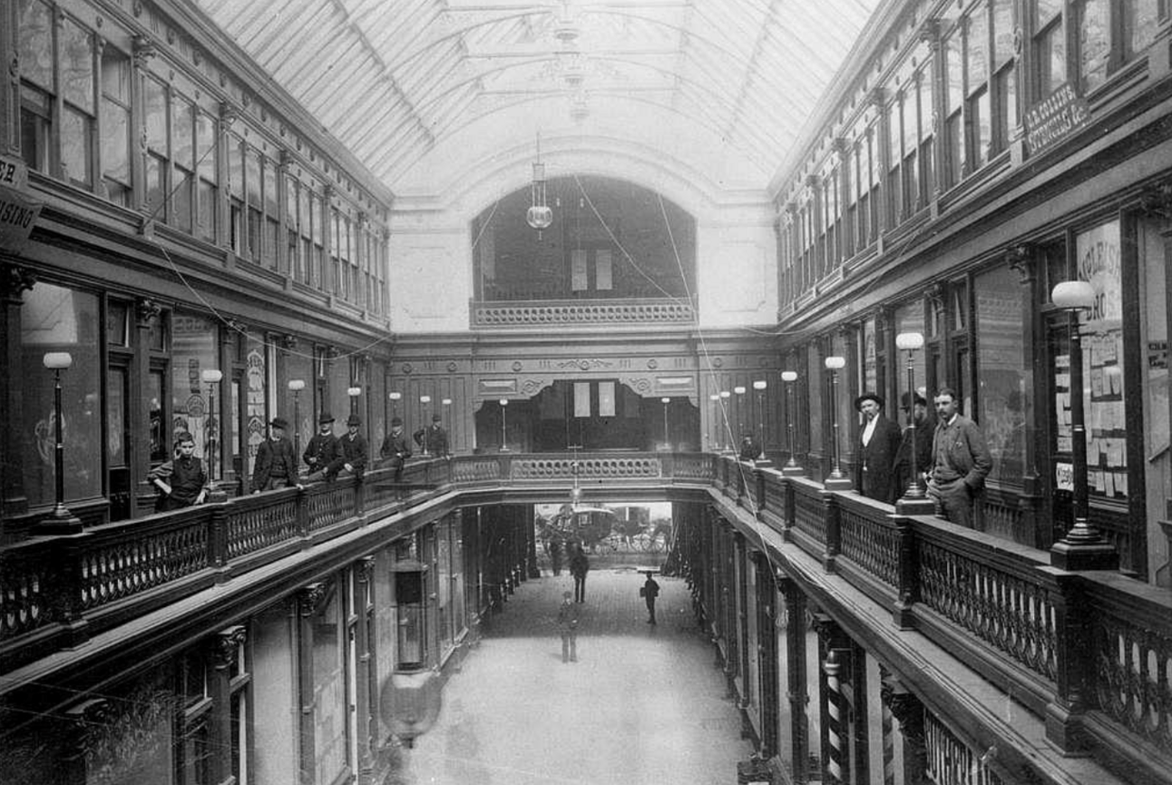 Toronto's Yonge Street Arcade was built in 1884 and was a four storey indoor mall. The arcade consisted of 52 stores and was the predecessor to the Eaton Centre.