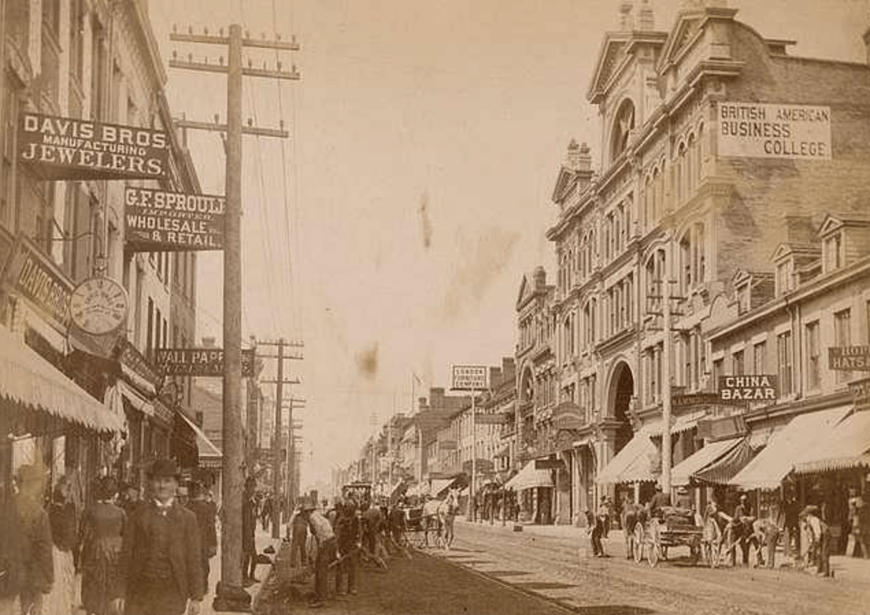The Yonge Arcade (at Temperance Street) is seen on the right of the photo. 1885-1895