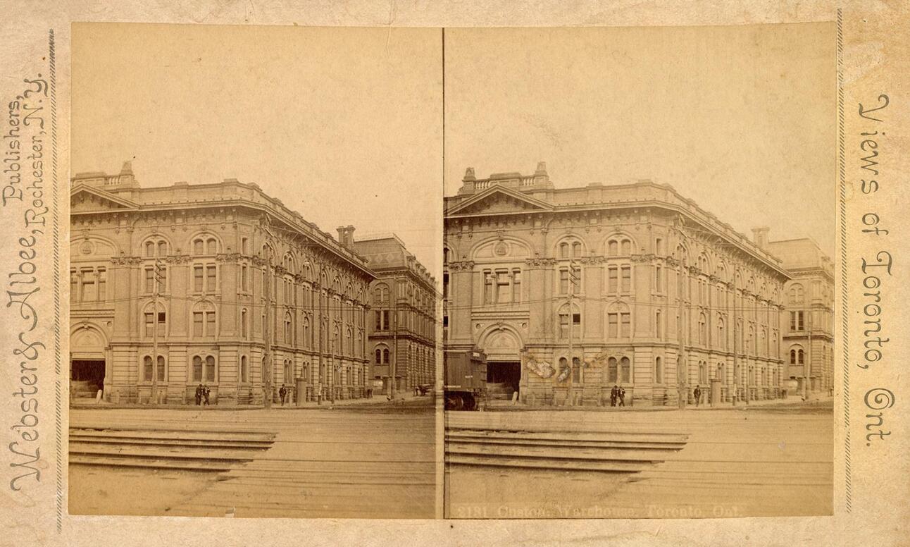 Custom Warehouse, Yonge St., north west corner Esplanade West. 1880s.