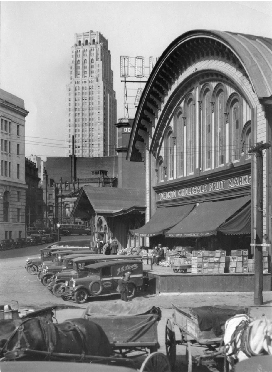 NE from Yonge St & The Esplanade in 1931. Canadian Bank of Commerce building rises above the city.